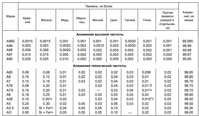 Первичный алюминий обозначается буквой А в маркировке, число 97 относится к значению после запятой в проценте алюминия, содержащегося в сплаве (99,97%).